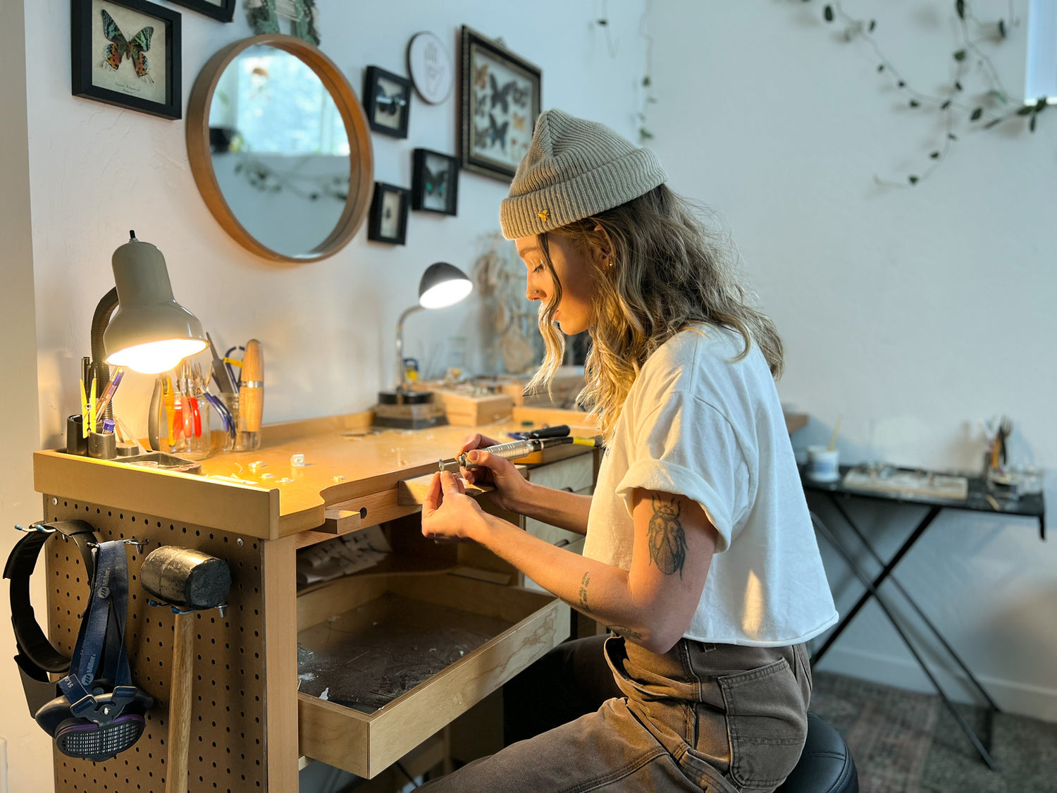 Pixie in the Dust is rooted in Bellingham, Washington. Four years ago, I picked up silversmithing, and my bench has become my sanctuary. As a craftswoman and artist, each piece I create is fueled by my vision and spirit. Each item you see is handmade, designed, photographed, packaged, and shipped by yours truly. I’m all about using ethically sourced, high-quality materials, which guarantees a rad level of craftsmanship. My pieces are designed to add an extra touch of magic to your everyday life.